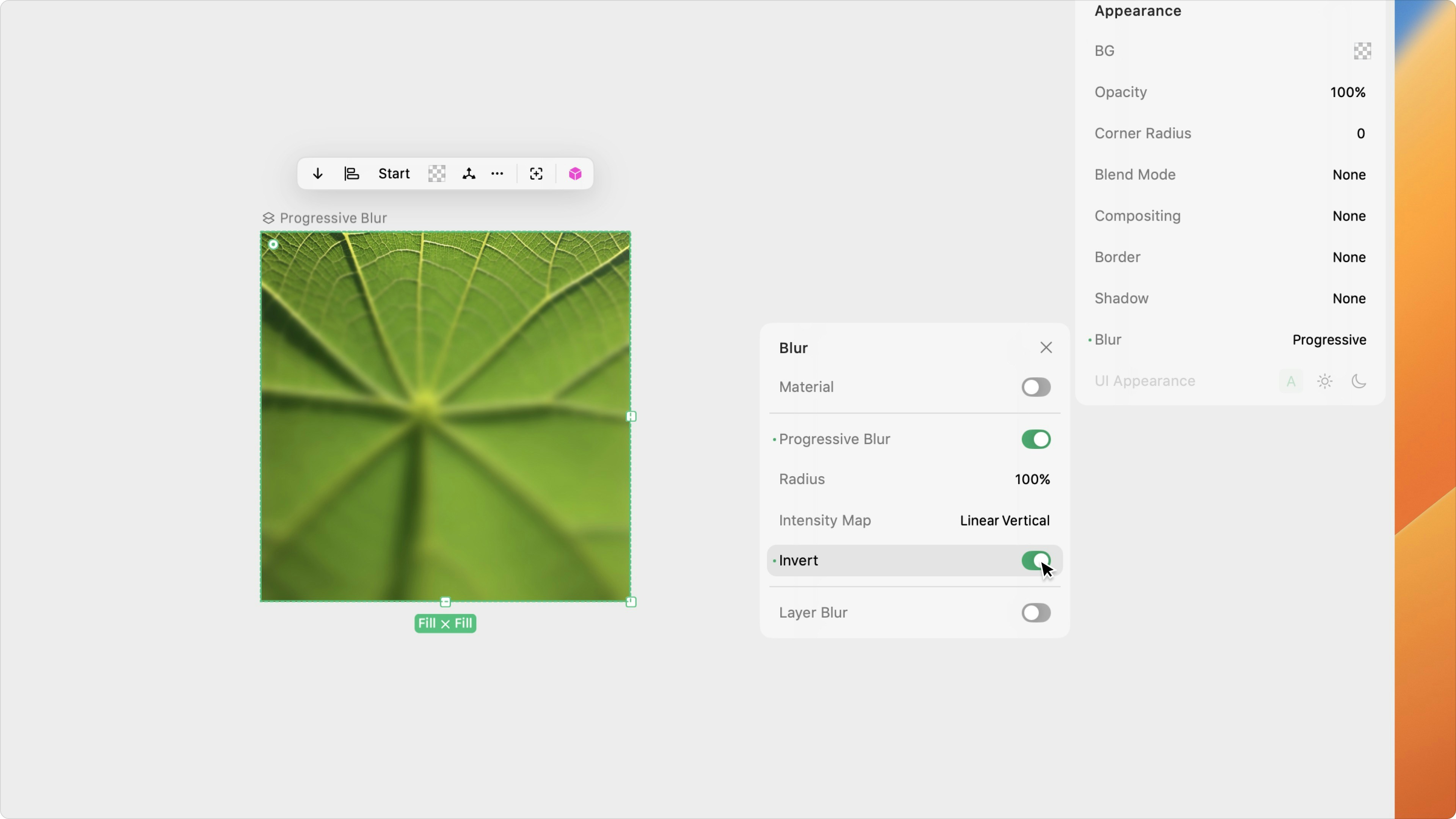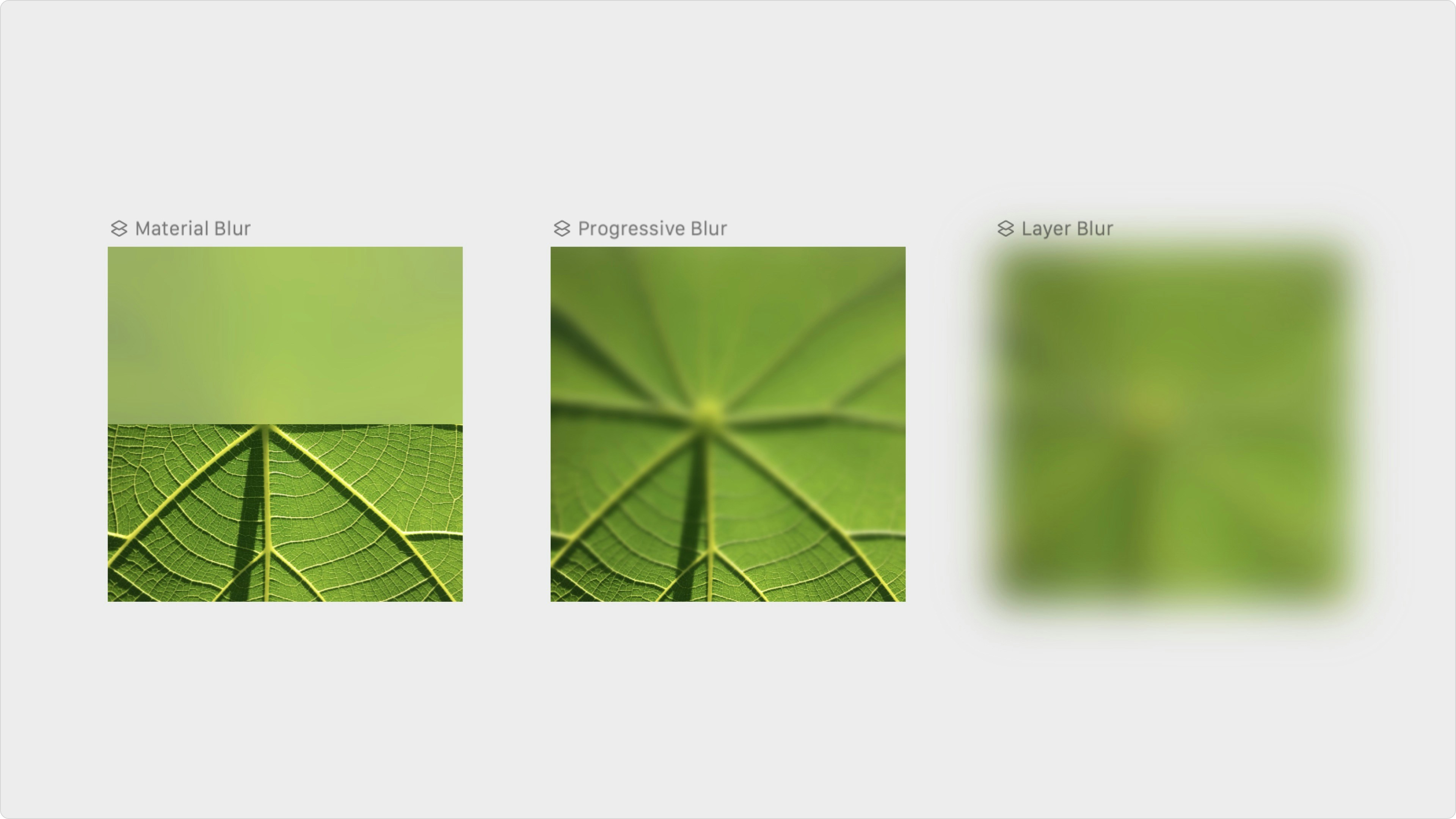 Use the Blur Effect property to select your desired blur from a list of built-in blurs (Extra Light, Light, Regular, Prominent, or Dark) or Apple’s system materials (Ultra Thin, Thin, Regular, Thick, and Chrome).