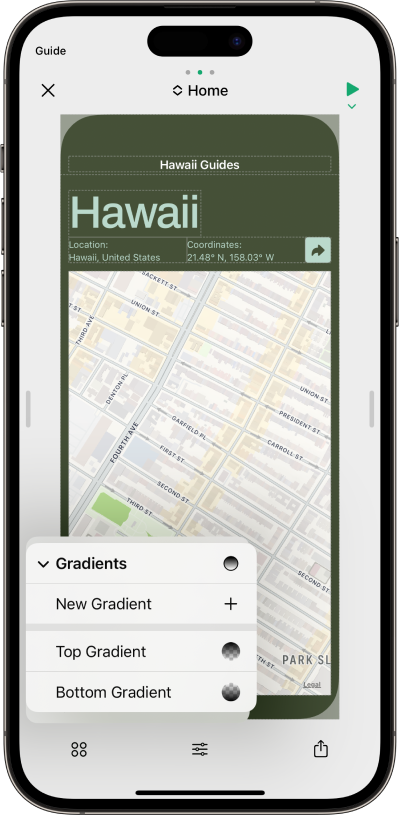 Edit your Gradient style by tapping on the gradient you’d like to edit, and adjusting the values the same way you initially created them.