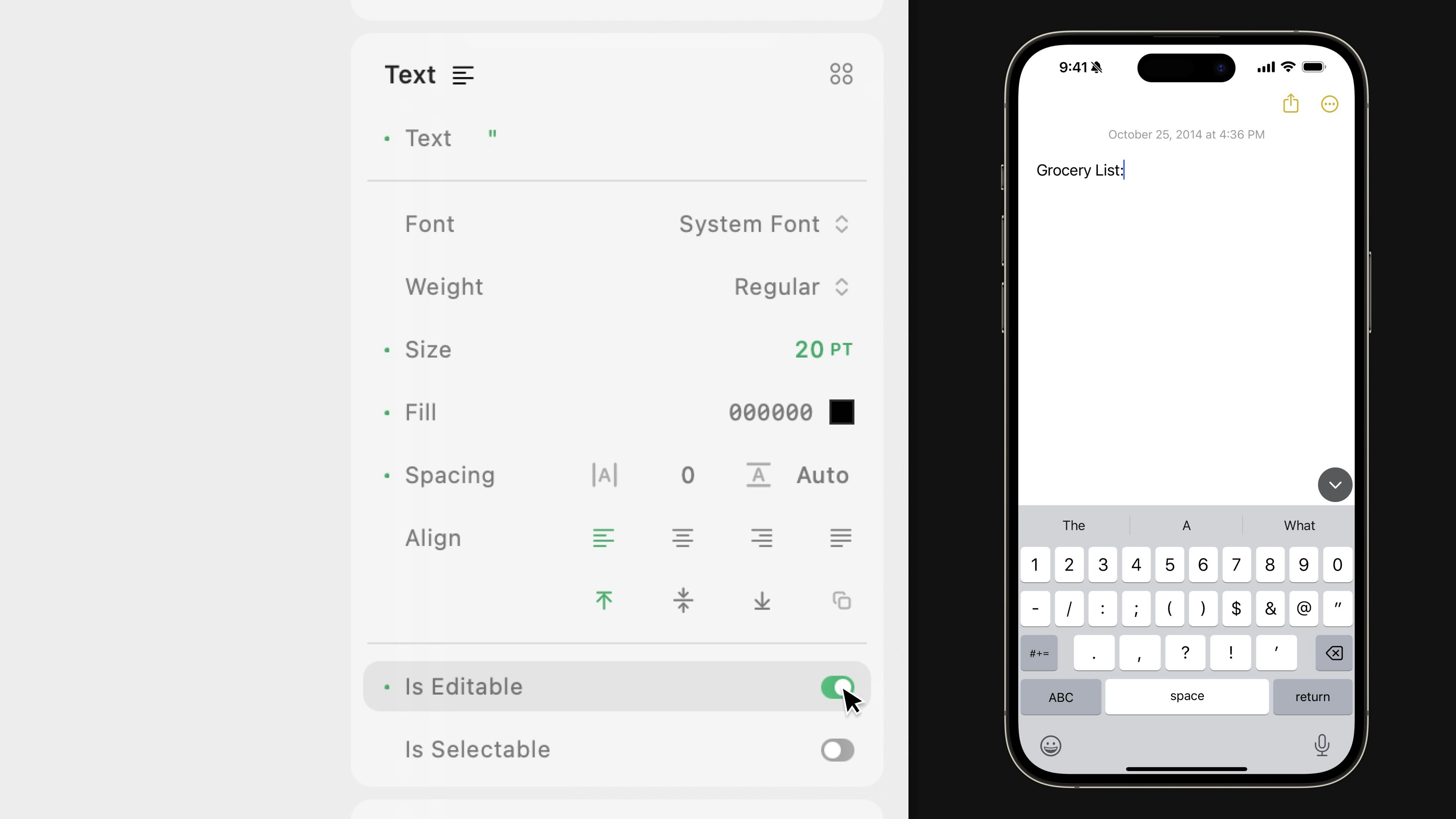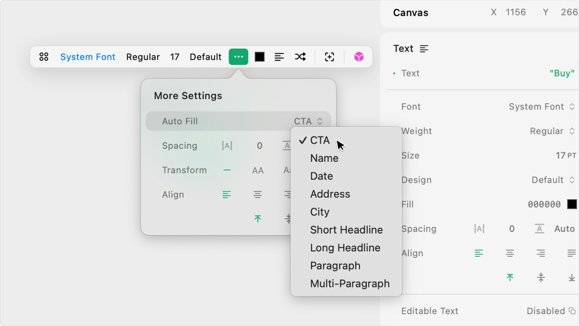 From titles to paragraphs, captions and more, text elements are a key part of most UI. Play lets you customize your text while staying within the bounds of technical feasibility. You’re able to edit text in the Element Settings Panel.In macOS, you can add text to your page, canvas, or selection using the T key